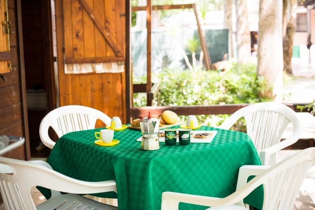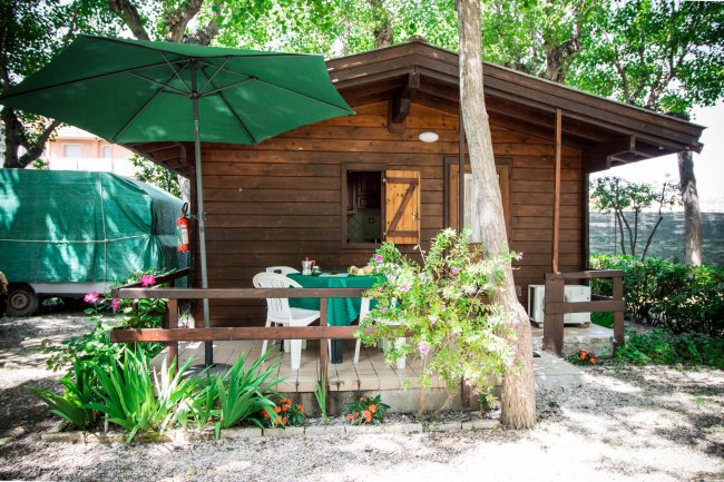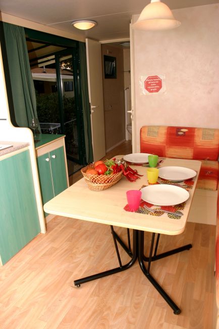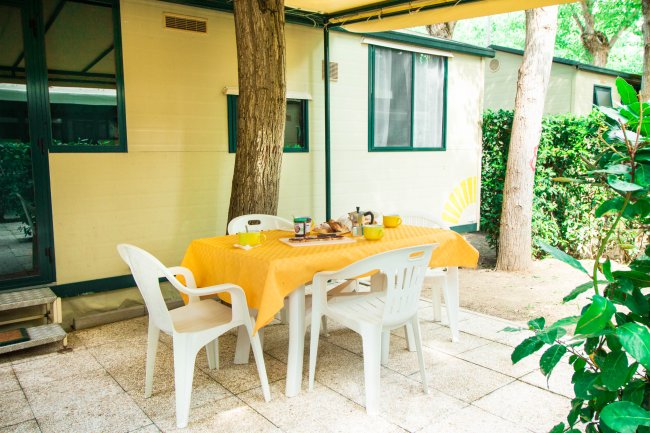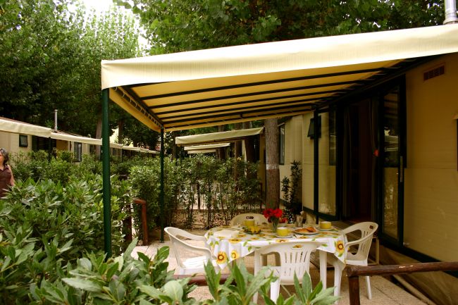 Ciascuna casamobile ha uno spazio antistante con veranda attrezzata di tavolino e sedie dove trascorrere piacevolmente i momenti di relax.