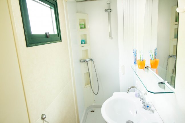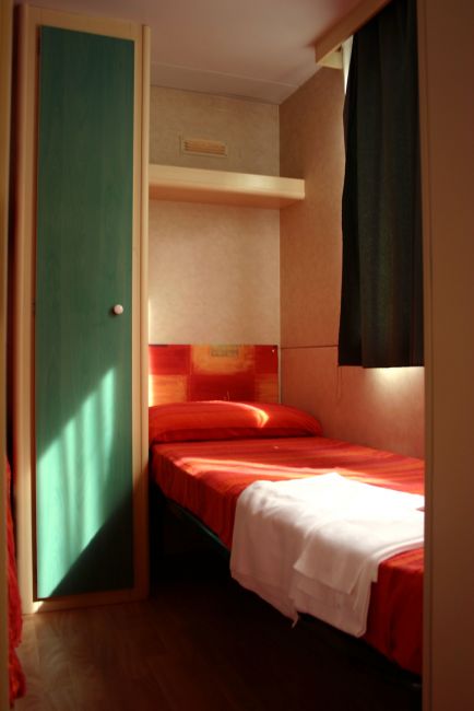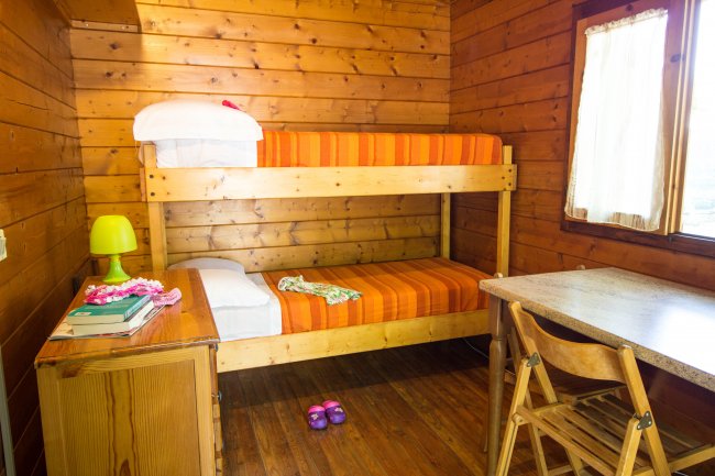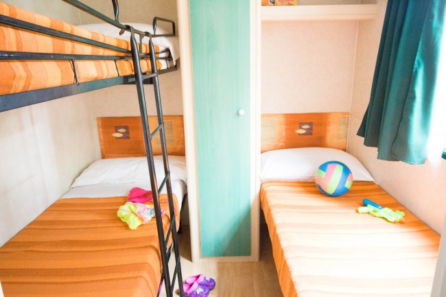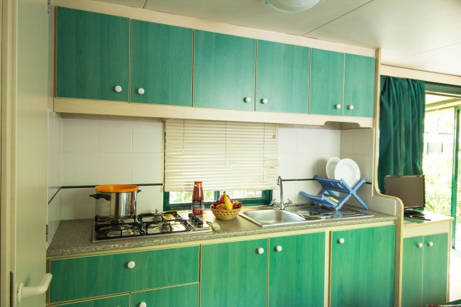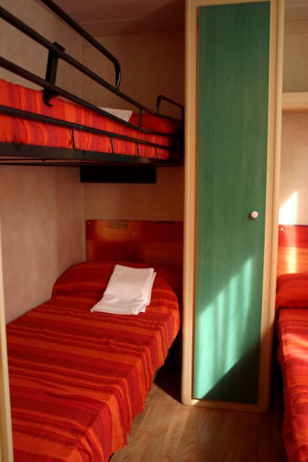 Le casemobili trilocali sono confortevoli ed immerse nel verde; dispongono di 1 camera da letto matrimoniale, 1 cameretta con 3 letti di cui 1 a castello, 1 zona giorno con angolo cottura e divano letto (1 piazza), doppi servizi (uno con wc e l'altro con doccia).