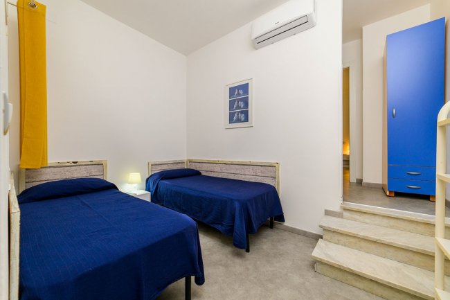 Villini: in muratura, fino a 4 tipologie, da 2 fino a massimo 4 posti letto. Sono dotati di aria condizionata, bagno con doccia bidet, phon e acqua calda, angolo cottura completamente attrezzato di stoviglie e utensili da cucina, giardino di pertinenza.