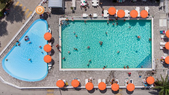 piscina, piscina per bambini, tennis, calcetto, beach volley, ping pong, biliardino, attività in piscina ed in spiaggia