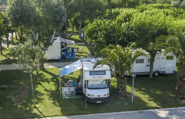Ampie piazzole ombreggiate per camper roulotte e tende fino a 110 mq