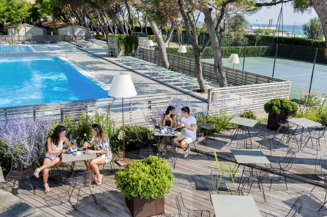 ristorante, bar, bagni per disabili, lavanderia, stireria, edicola, wi-fi in zone comuni, parcheggio interno, camper service, con scarico acque reflue, spiaggia privata, infermeria, baby room e fasciatoio, servizio spiaggia