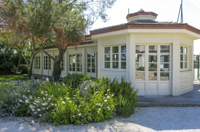 cucina e soggiorno, camera con letto matrioniale, bagno con doccia, tv e cassaforte e veranda