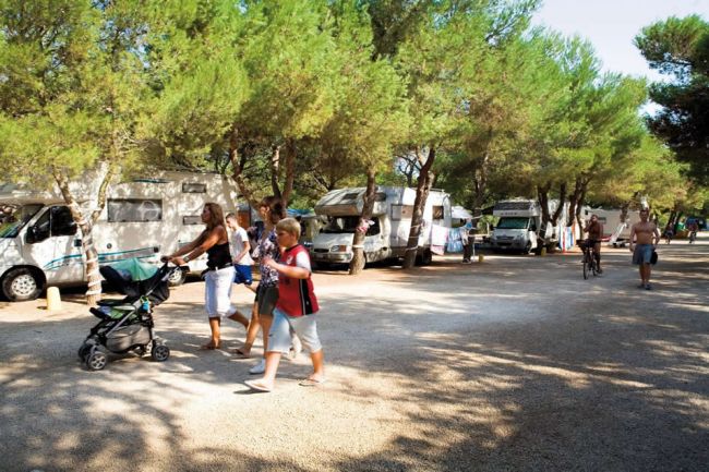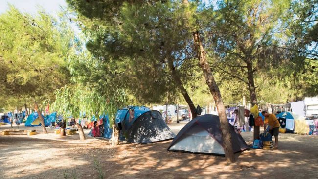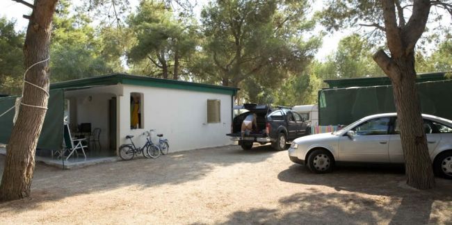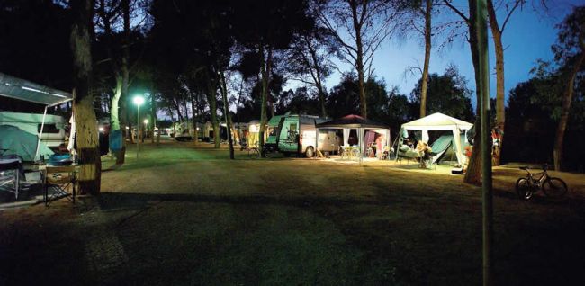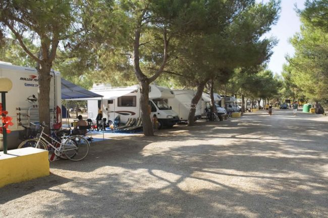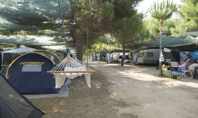 ampie piazzole ombreggiate per soggiornare in tenda o roulotte. In ogni piazzola è presente una colonnina di corrente elettrica da 3 a 6 ampere