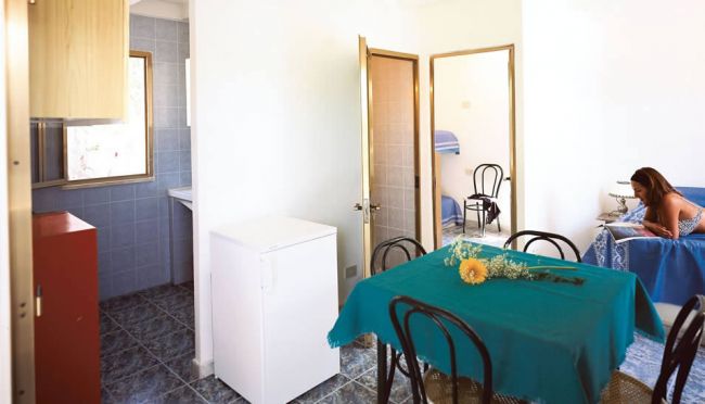 dotate di angolo cottura con frigorifero, forno e veranda esterna ombreggiata, oltre a servizi privati con doccia. Tutte le casette sono fornite di riscaldamento e quasi tutte anche di aria condizionata. Tipo CENTRO STORICO di 30mq, con volte a stella situate nella vecchia costruzione dell'azienda, cortile esterno riservato. TIPO A indipendente di 36mq con soggiorno con letto matrimoniale, fronte mare a 50mt dalla spiaggia. TIPO B bilo indipendente di 36mq con soggiorno con letto matirmoniale, stanza con letto a castello a 250 mt dal mare (senza aria condizionata). TIPO C bilo indipendente di 45mq con soggiorno con letto matrimoniale, stanza con letto a castello più letto singolo; a 200 mt dal mare