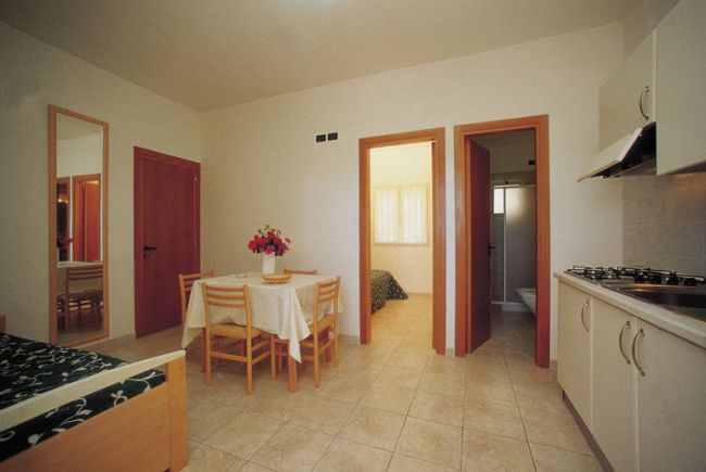 Appartamenti: bagno con doccia, angolo cottura, veranda coperta e giardino BILO 2: soggiorno con angolo cottura, camera matrimoniale, bagno con doccia e veranda coperta BILO 3: soggiorno con angolo cottura e divano letto a scomparsa, camera matrimoniale, bagno con doccia e veranda coperta BILO 4: soggiorno con angolo cottura e divano letto estraibile, camera matrimoniale, bagno con doccia e veranda coperta.