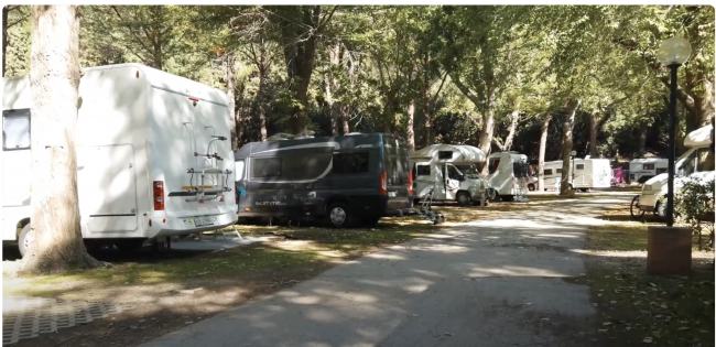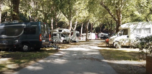 Piazzole ben ombreggiate e spaziose: alcune piazzole hanno la possibilità di carico acqua, mentre in prossimità di ogni piazzola sono presenti colonnine per la corrette elettrica da minimo 3KW. Il campeggio dispone inoltre di zona di carico e scarico acque chiare e scure per i camper. I servizi di carico e scarico, così come l’uso della corrente, sono gratuiti.