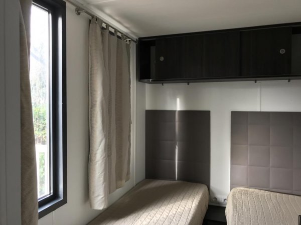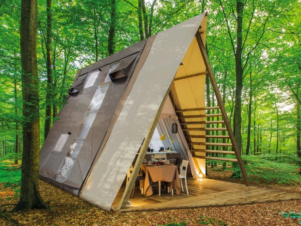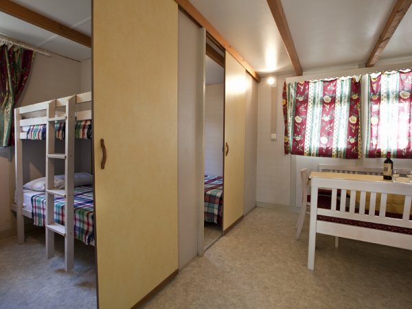 TENDA WOODY 5 posti, tenda trilocale, camera matrimoniale, cameretta con letto a castello e letto singolo, bagno con doccia;