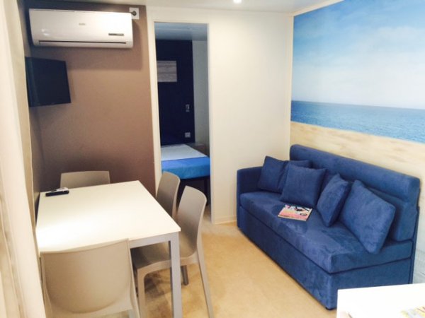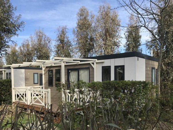 CASE MOBILI DELUXE con area giorno e angolo cottura attrezzato, microonde, Tv, aria condzionata, bagno con doccia, secondo bagno con wv e lavabo, veranda coperta attrezzata. Si suddividono in: