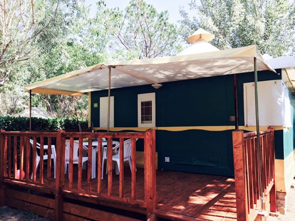 TENDE con aria condizionata, area giorno con angolo cottura, microonde, veranda con tavolo e sedie. Si suddividono in: