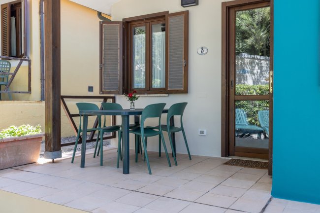 BUNGALOW PREMIUM fino a 4/5 persone: Novità 2024! Alloggi in muratura di circa 35 mq. Dispongono di aria condizionata, tv, area giorno con angolo cottura e divano letto due posti, letto a soppalco in zona giorno, camera matrimoniale, patio esterno attrezzato. Posizionati, tra gli appartamenti, nella zona più vicina al mare. Accesso compreso ad un’esclusiva area solarium riservata dotata di lettini.